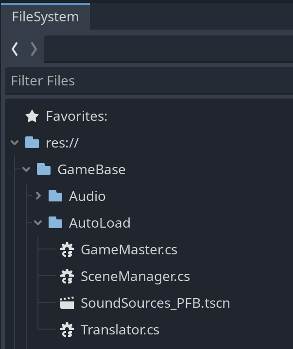 - AutoLoad – Contains scripts and godot scenes that are automatically loaded when the game is started. Gamebase comes preconfigured with the optimal autoload sequence.