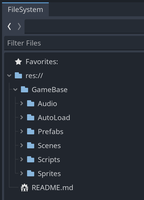- GameBase – The root of your primary game project. Other plugins and addons should be stored outside of GameBase.